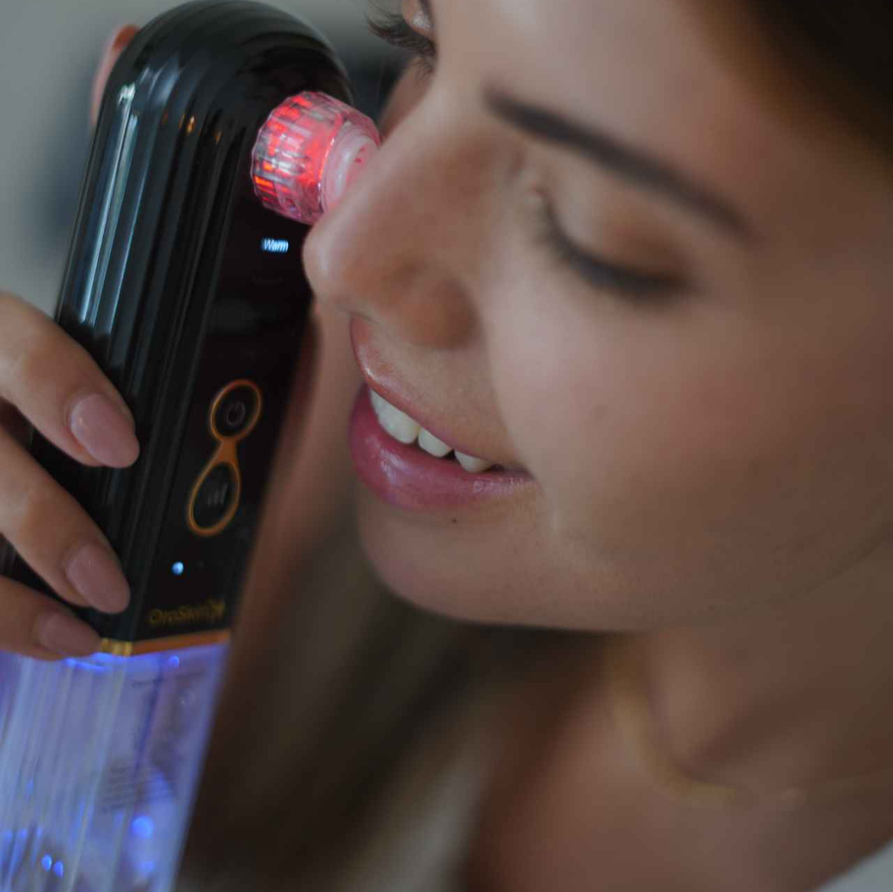 Now imagine all these treatments working in harmony. OroSkin Pore-fection opens, vacuums, cleans, and closes your pores while delivering a hydra-facial and LED therapy—all for spa-level results at home.